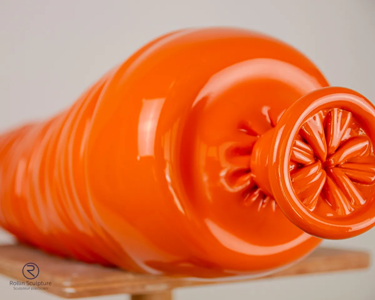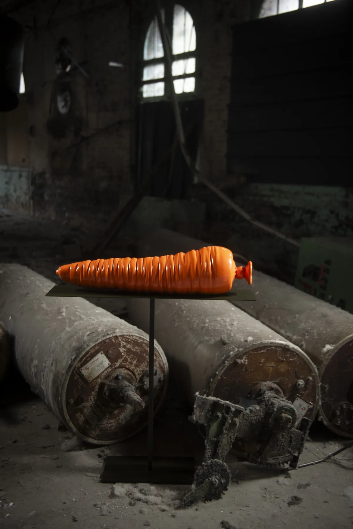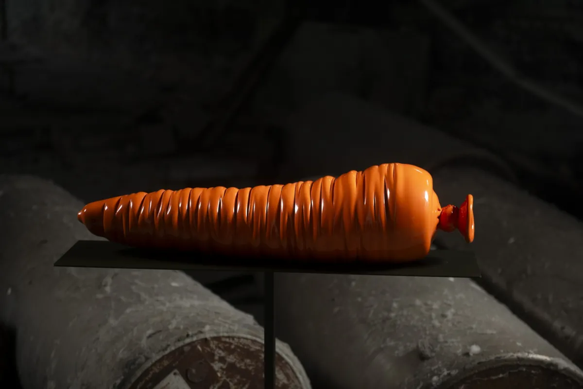 Description: The first carrot to be harvested ready packed! A continuation of my work on the objectification of beings and new genomic techniques.