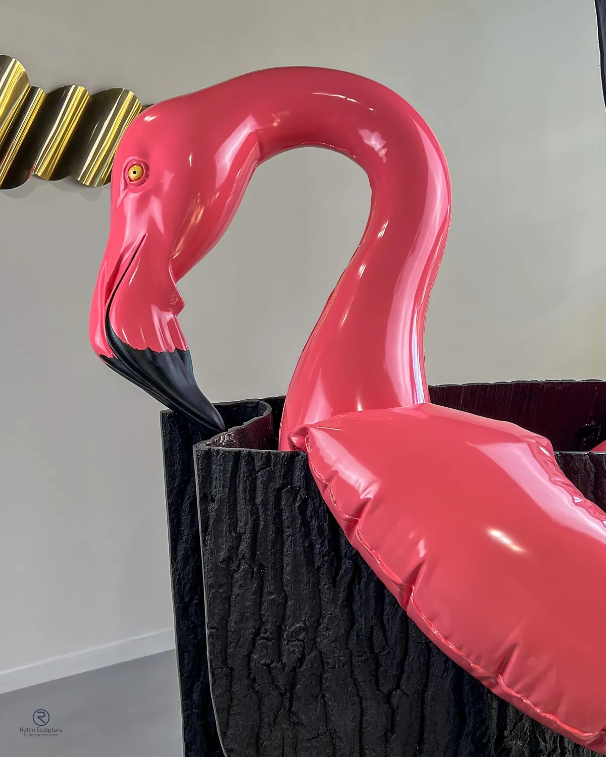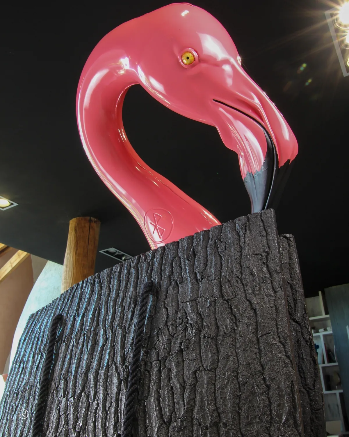 Material:Lacquered polyester resin for the pink flamingo and colored acrylique resin throughout