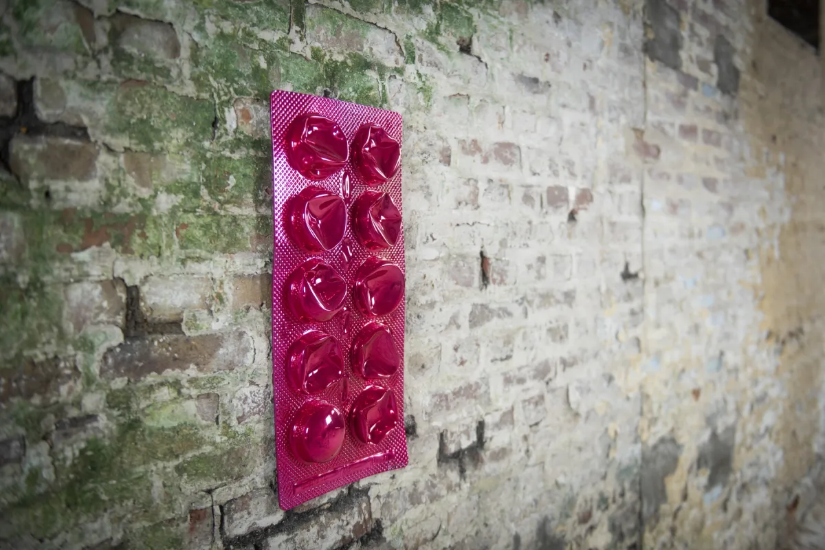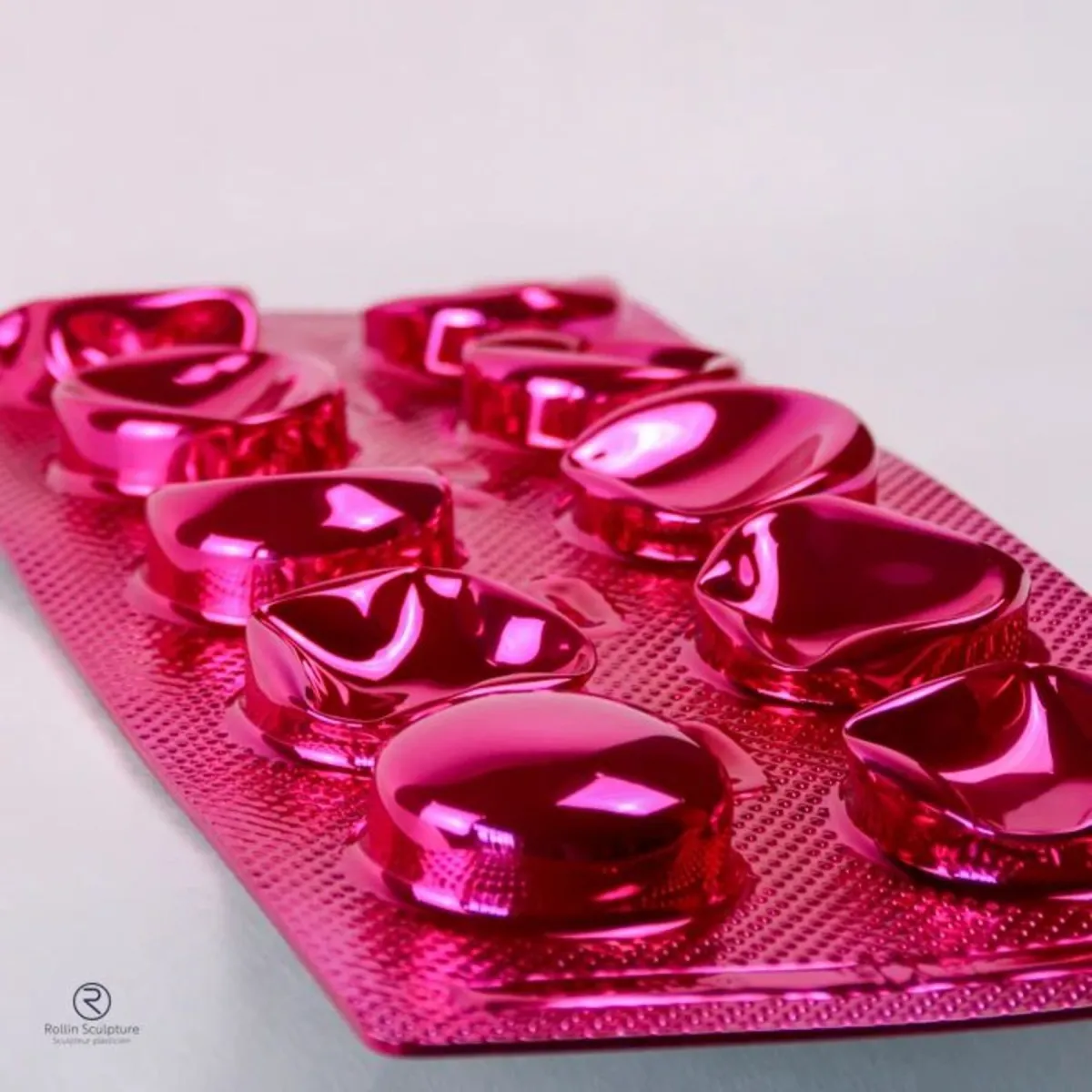 I found it interesting to create this sculpture with a strong contrast between the material, the pop color and the gravity of the subject. I left only one pill unused on the plate, the dizziness of withdrawal...